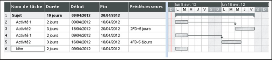 Le lien « fin-début » avec décalage positif peut être utilisé pour prendre en compte en délai technique, par exemple le temps de séchage du béton.