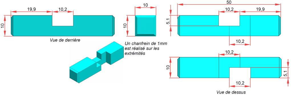 Réaliser sur le modeleur la pièce N°5 suivante en respectant les dimensions.
