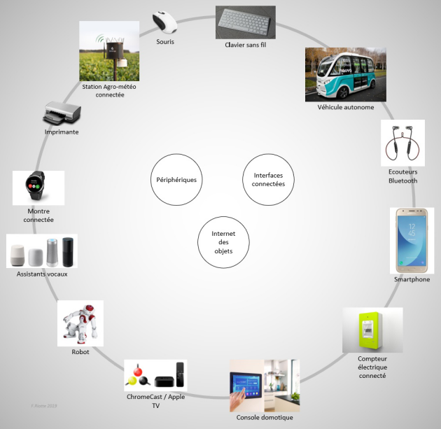 un smartphone rentre à la fois dans la catégorie interface connectée et internet des objets à partir du moment où il traite et génère lui-même des informations.