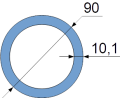 Conduite d’aspiration : Longueur = 2 m, Diamètre extérieur = 90 mm, Épaisseur = 10,1 mm
