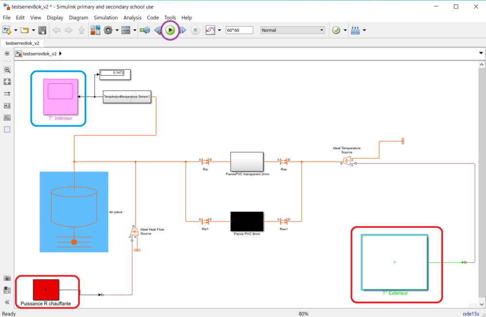 Lancer la simulation (voir ci contre, entouré en violet).