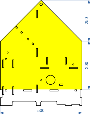 Q5 : À partir du dossier technique et de la figure ci-contre, CALCULER la surfaces en PVC expansé du fond intérieur (surface jaune ci-contre) puis CALCULER l'ensemble des surfaces en PVC expansé comprenant le plateau de base et le fond intérieur (en m2).