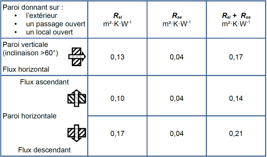 | Résistance thermique | Résistance thermique superficielle[1] | Coefficient de transmission thermique | PVC expansé | PVC transparent |