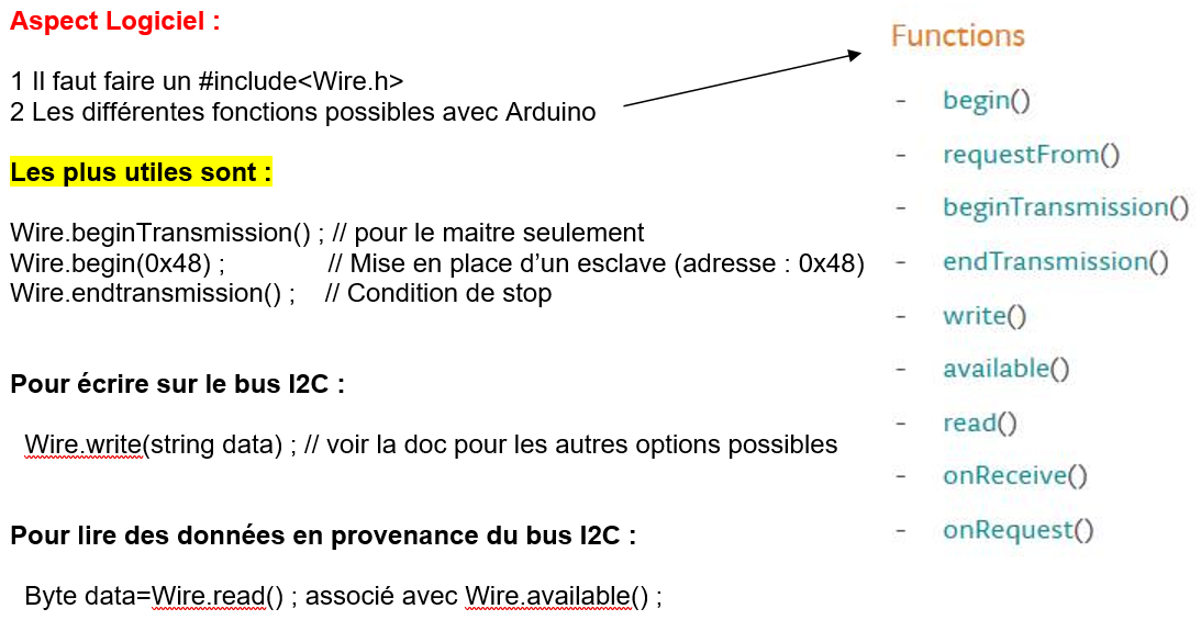 Présentation de la carte ARDUINO et des différentes fonctions pour programmer le bus I2C.