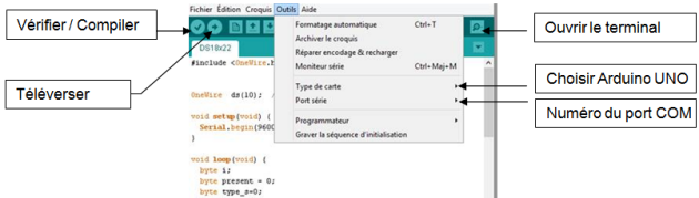 Dans l'onglet « Outils » CHOISIR le type de carte (exemple : Arduino UNO)