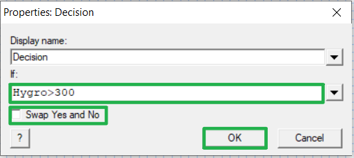 Dans la fenêtre « If », COMPLÉTER la variable « Hygro » avec l'équation de comparaison.