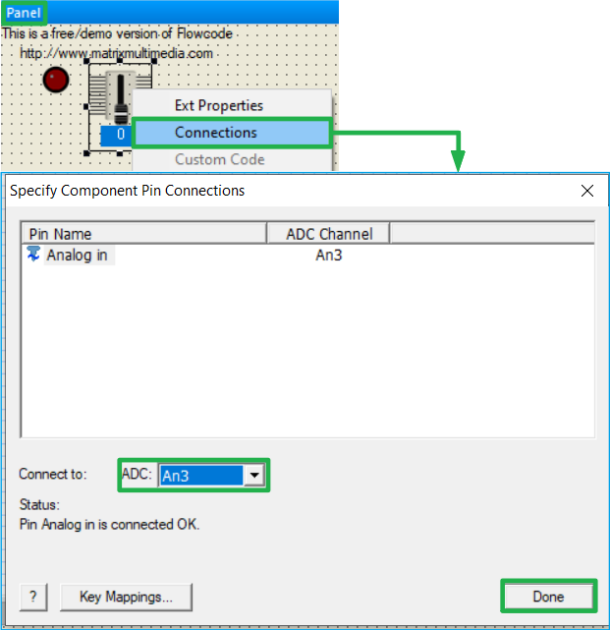 Dans la fenêtre « Panel ». CLIQUER droit sur le curseur et OPTER pour « Connections».