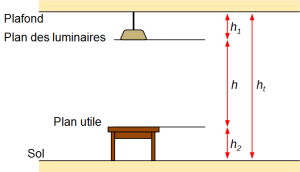 On ne considère jamais la hauteur totale d'un local, mais la hauteur des luminaires au-dessus du plan utile.