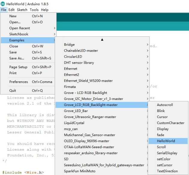 Une documentation est disponible sure le site seeedstudio , ainsi que de nombreux exemples dans : Fichiers \ Exemple \Grove_LCD_RGB_Backlight....