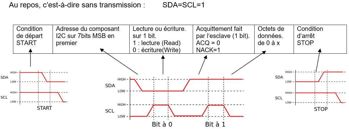 Il est maintenant nécessaire de connaître comment utiliser SDA et SCL pour :