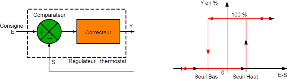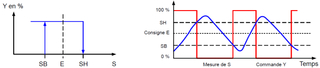 Le régulateur se caractérise par deux états de la commande (0 % et 100 %)'