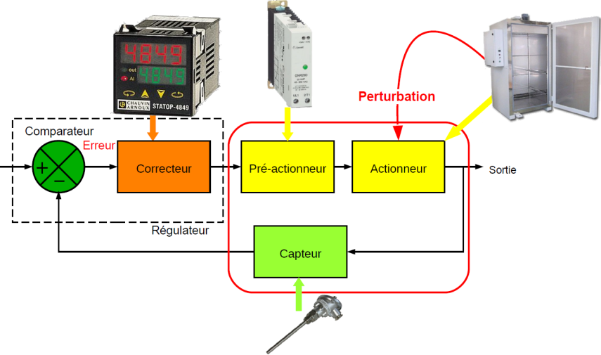 Il est composé d'un régulateur pouvant contenir un correcteur et un système contenant un capteur permettant de prélever une image de la grandeur réglée.