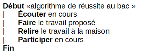 L'algorithme permet de donner la démarche de programmation d'un produit sans connaître le langage de programmation.