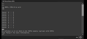 Vous pouvez afficher des informations à l'aide de l'instruction python print, mais la carte ne possède pas d'écran. Essayez le programme ci-dessous qui simule le lancer de 10 dés.