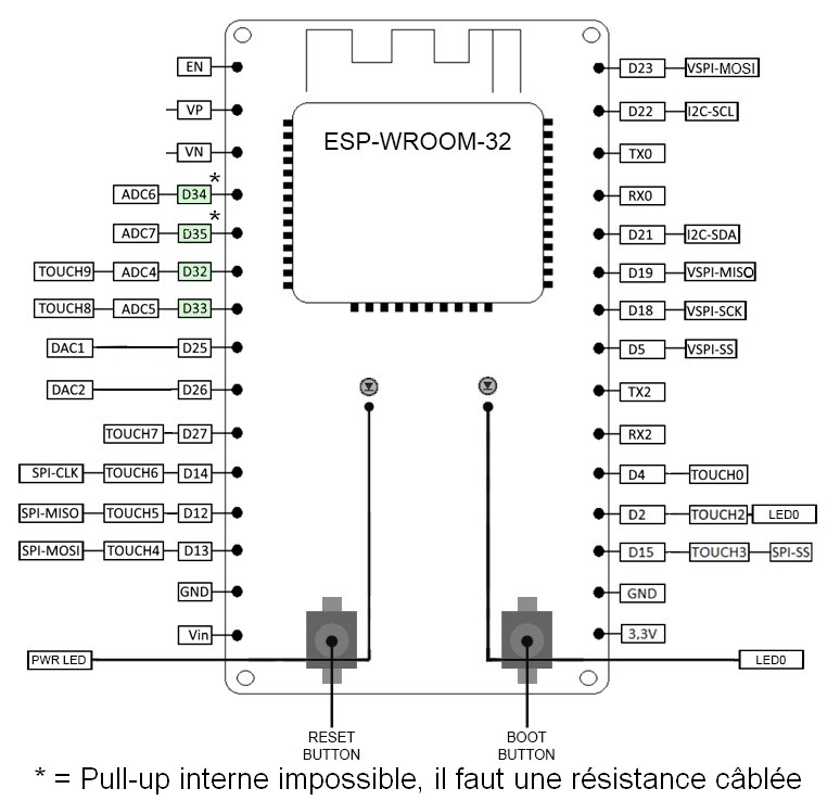 Nombre d'entrées analogiques : au maximum 4 en configurant les broches D32 à D35