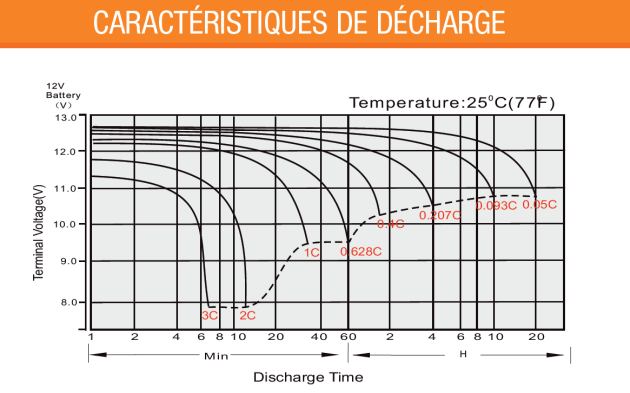 Cette batterie a un taux de décharge C = 1/20 ou 0.05
