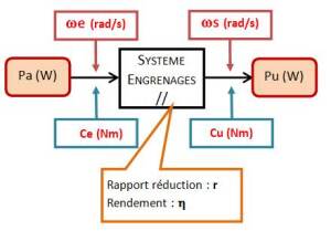 Un système à engrenages peut être représenté par le schéma ci-contre :