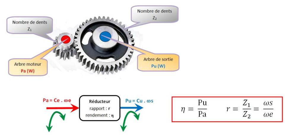 Le rapport de réduction : rapport entre le nombre de dents des roues dentés.