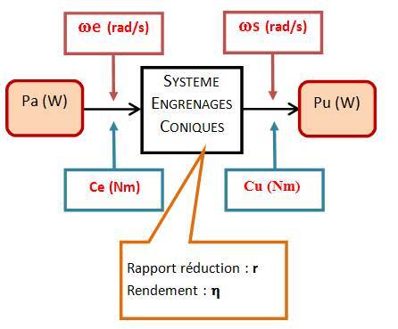 Un système à engrenages coniques peut être représenté par le schéma ci-contre :