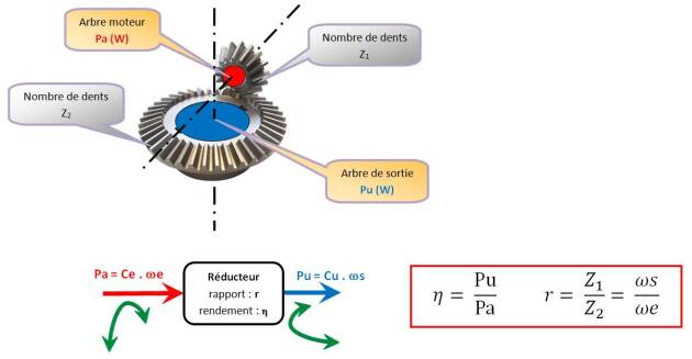Le rapport de réduction : rapport entre le nombre de dents des roues dentés.