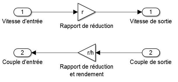 Sortie : énergie mécanique de rotation suivant l'axe x , caractérisée par une vitesse angulaire ωs et un couple Cu.