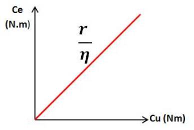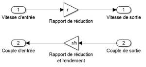 Entrée : énergie mécanique de rotation suivant l'axe x , caractérisée par une vitesse angulaire ωe et un couple Ce.