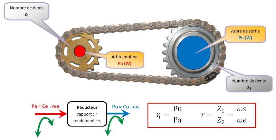 Le rapport de réduction : rapport entre le nombre de dents des roues dentées.