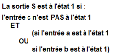 C'est une équation associant des fonctions logiques de base (OUI, NON, ET, OU,..).