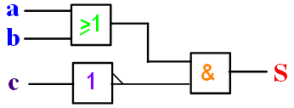 \(S=(a+b). \bar c\)