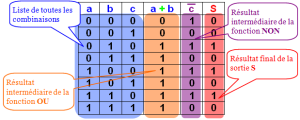 Ce tableau recense toutes les combinaisons possibles des variables d'entrée et donne l'état de la sortie pour chacune d'elles.