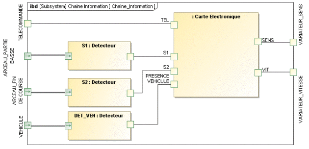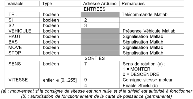 Le tableau ci-dessous précise les variables (type, adressage,...) d'entrée et de sortie de la chaîne d'information.